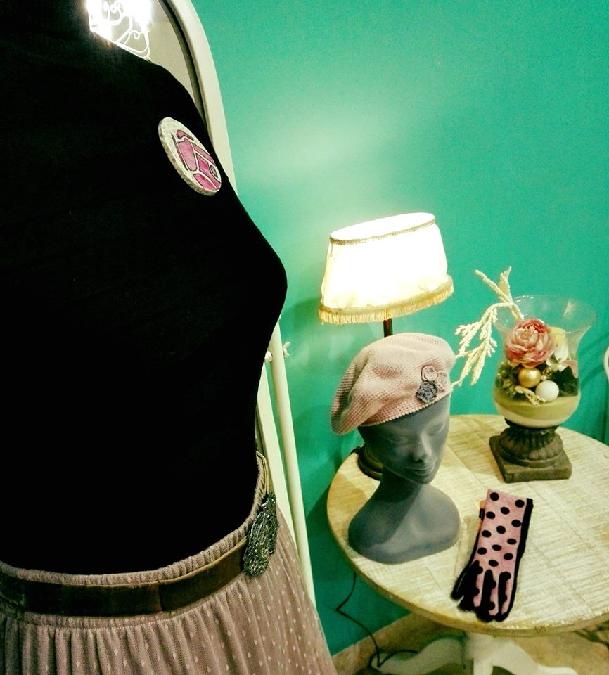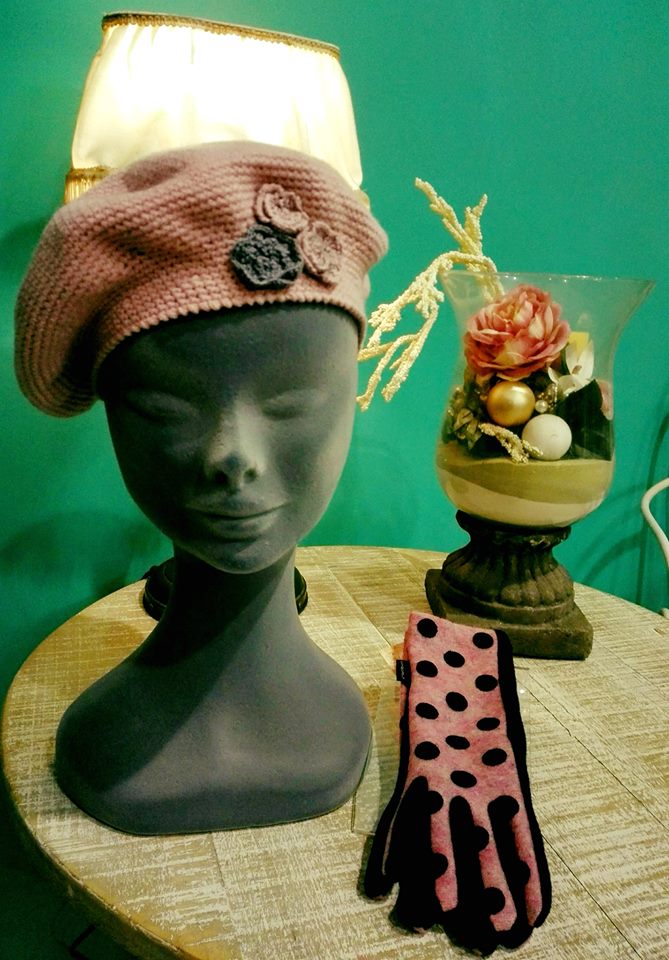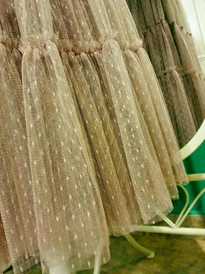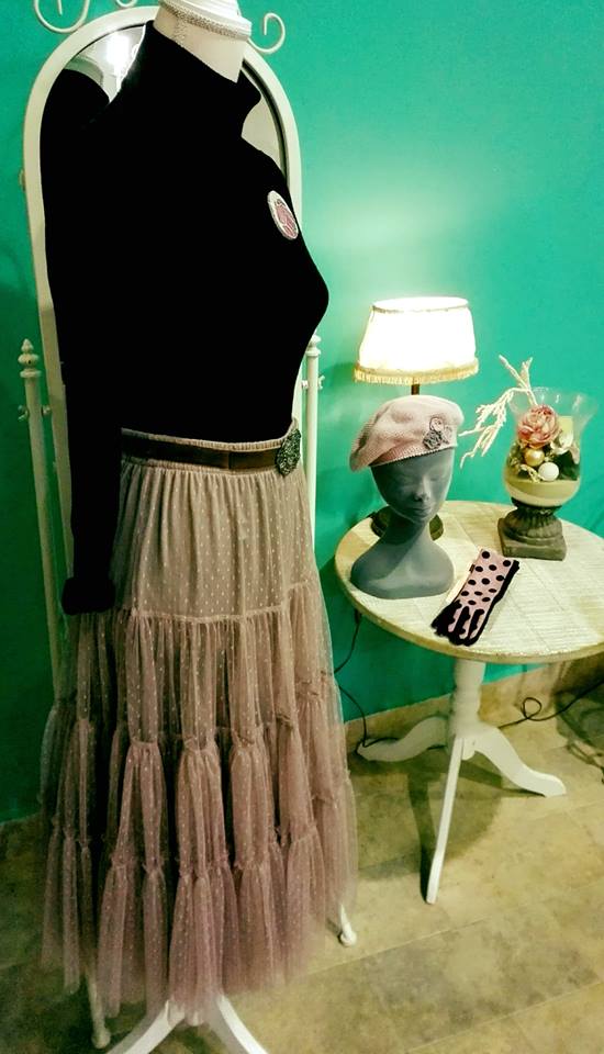 Desde Alma nos proponen un precioso conjunto; falda rosa de plumeti de topos combinada con una boina del mismo color.