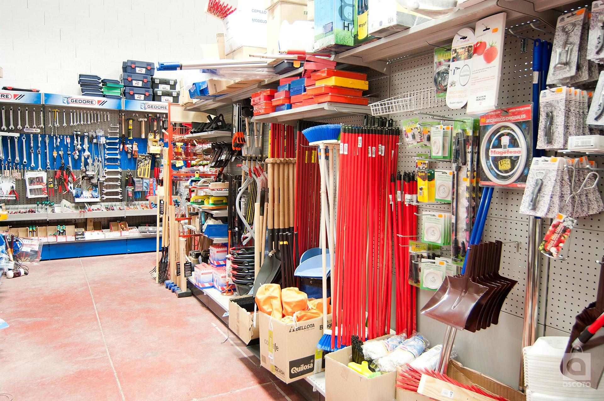 Ferretería: suministro de jardinería y riego. Herrajes carpintería. Adhesivos. Ferretería doméstica. Limpieza. Herramienta bricolaje. Suministro industrial. Tornillería. Ropa laboral. Herramienta de corte. Herramienta eléctrica. Herramienta neumática, taller.