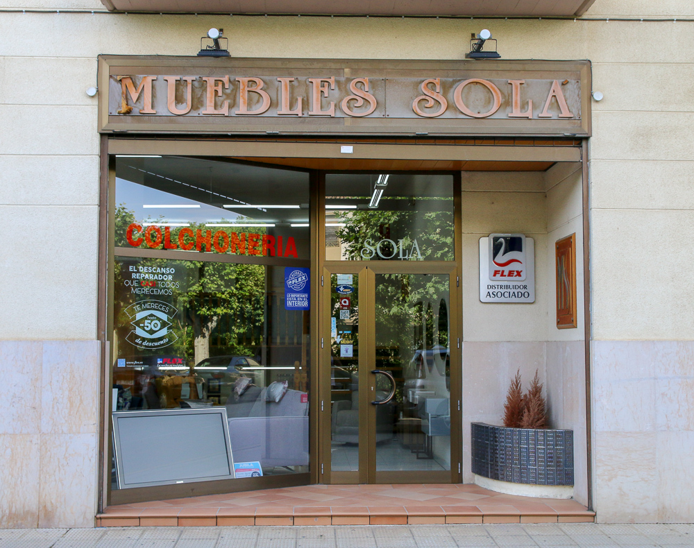 Muebles Sola cuenta en Tafalla con dos establecimientos modernos, dotados de gran espacio estratégicamente distribuido para los clientes puedan ver y comparar los mejores diseños y calidades en cocinas, baños, cuartos de estar, tresillos, dormitorios, murales, armarios de puertas correderas, somieres y cochones Flex. Así como un sinfín de complementos para decorar el hogar.